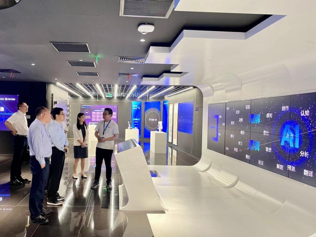 调研中,宋彬一行参观了百度飞浆展厅,实地了解了百度产业级知识增强文心大模型,并与企业相关负责人就百度人工智能产业架构布局、大模型发展产业生态及场景应用等内容进行了深入交流。
