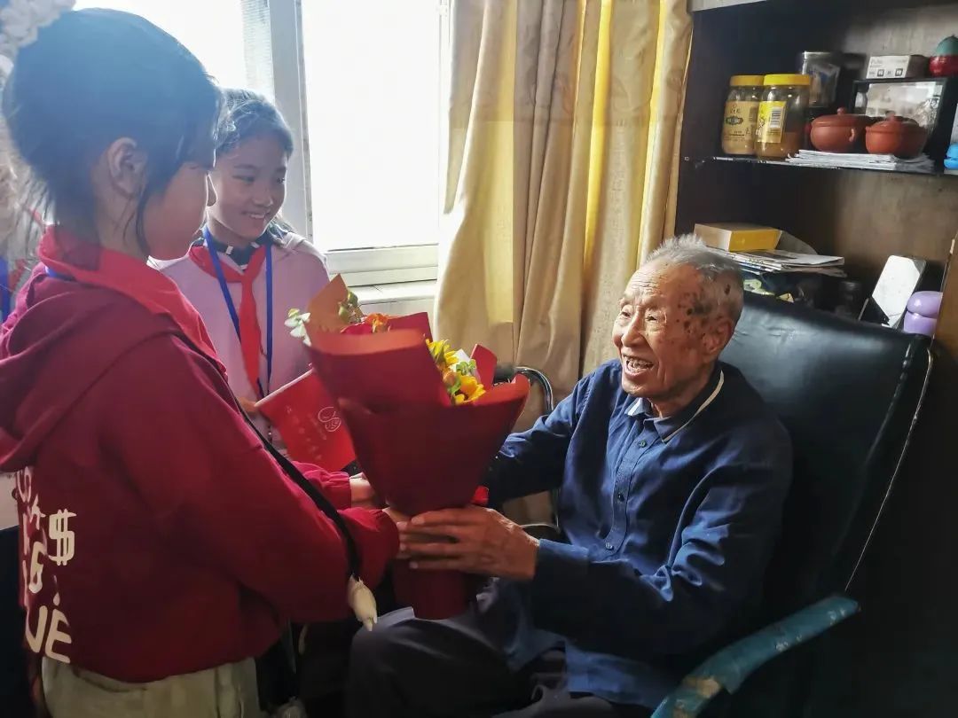 “爷爷中秋快乐!”随着“小星星”旋律的响起,百岁老人翁老伯家一改往日的冷清,充满了欢声笑语。“这些孩子还特意拿了笛子来吹给我们听,家里好久没有这么热闹了。”大家还为翁老伯送上鲜花和月饼,陪伴他度过美好时光。