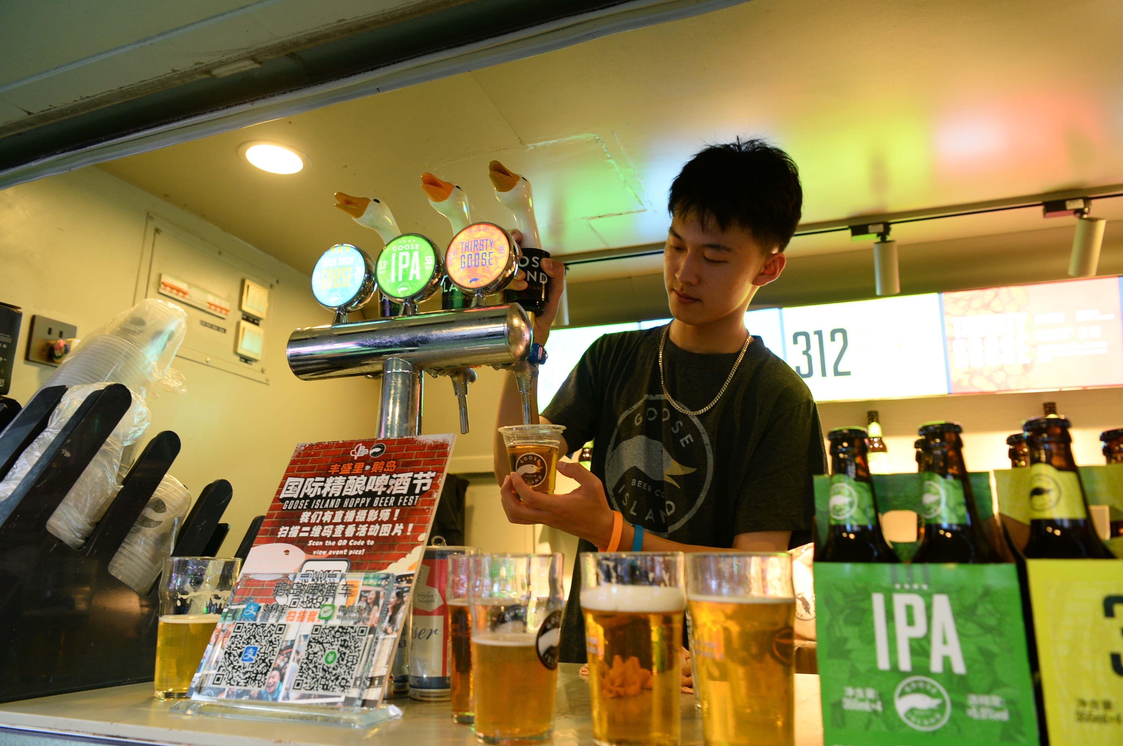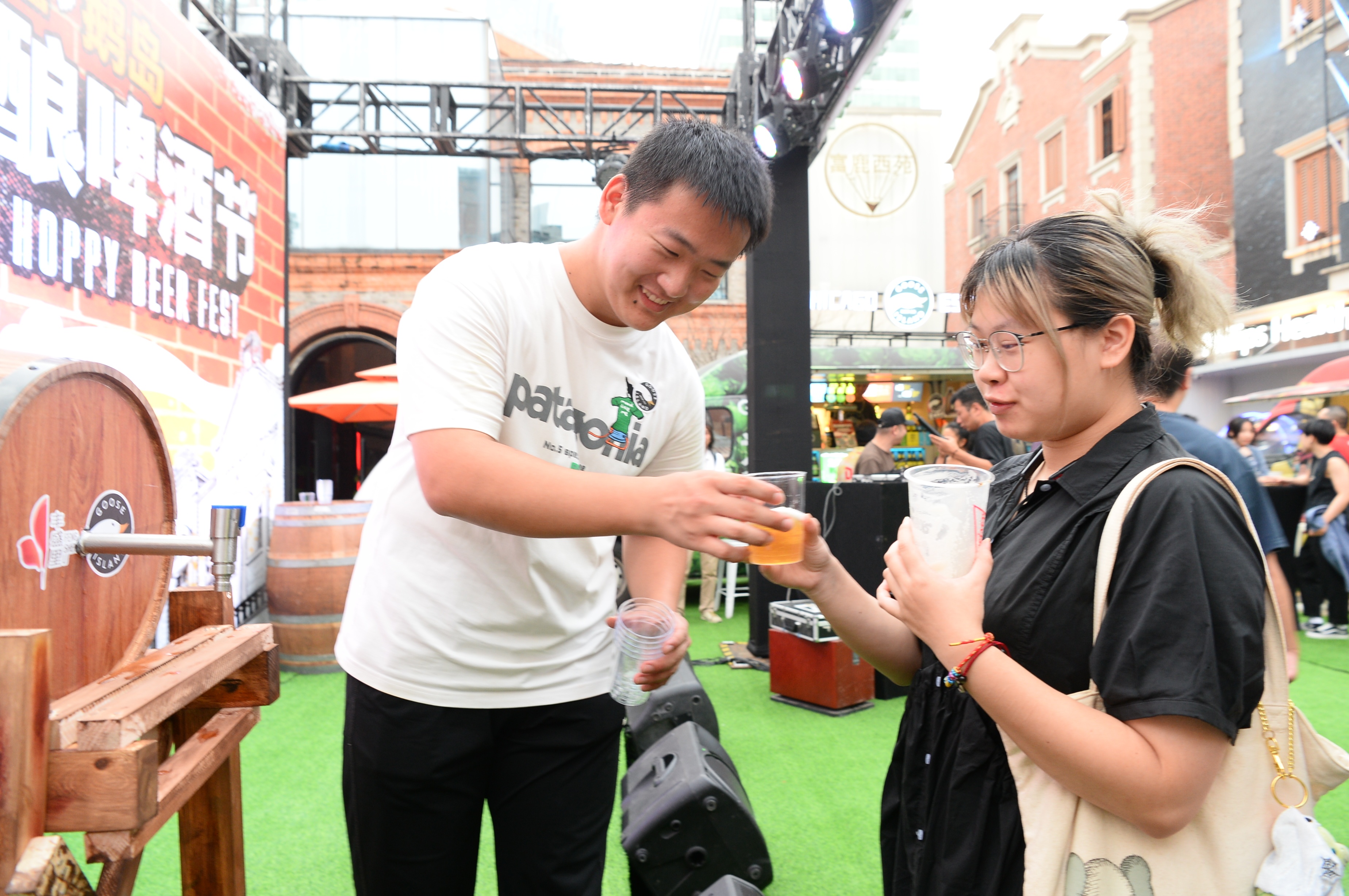 本次2023 丰盛里·鹅岛国际精酿啤酒节集合了鹅岛、拳击猫、青岛啤酒等近十个精酿啤酒品牌,以及多个来自丰盛里的美食品牌。
