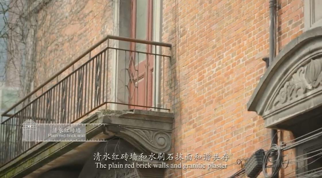清水红砖墙和水刷石磨面和谐共存