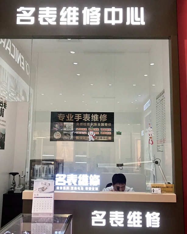 在南京路步行街西首的新世界城一楼商场,有一间不足4平方米的“名表维修中心”,承接维修多个品牌手表,涉及更换电池、机芯维修、拆卸表带、清洗保养、黏刻度、表带打孔、进水清理、抛光翻新等。