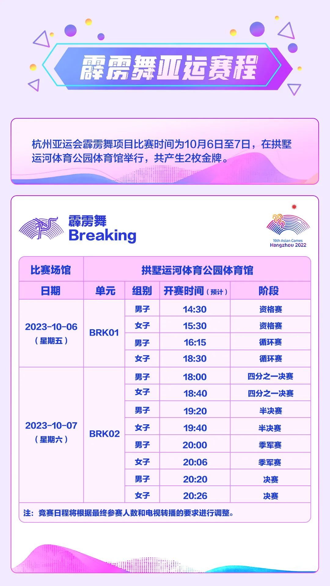 10月6日至7日,杭州亚运会新增项目霹雳舞将在拱墅运河体育公园体育馆展开竞技。