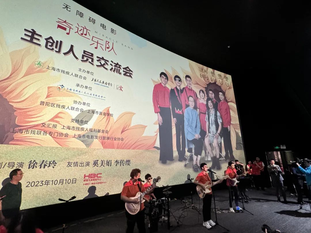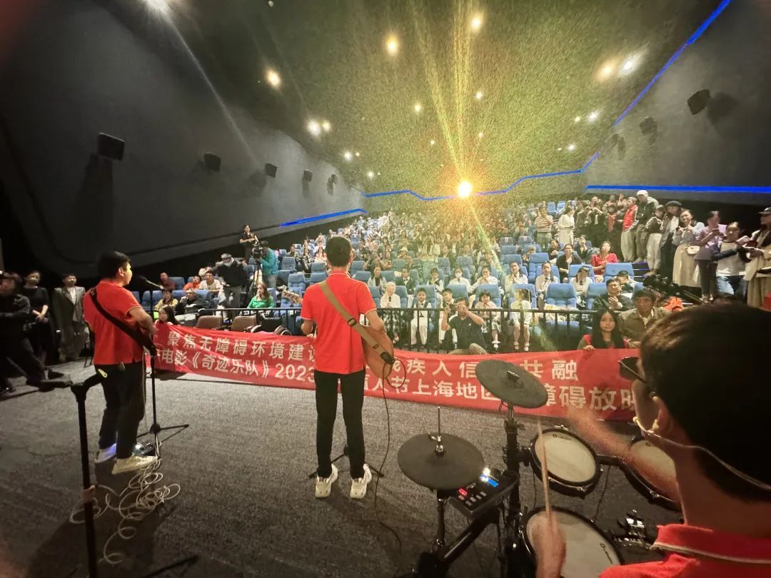 当天活动现场,200多名残障人士、助残志愿者、社会爱心企业员工等共同观看了电影《奇迹乐队》无障碍版本。