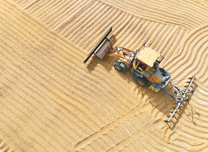 眼下,秋收准备工作在全省各地展开。南京市浦口区水稻种植3.43万亩,预计10月中下旬开始收割,大面积收割要到11月上中旬。10月10日上午,浦口区谷满满种植专业合作社负责人邵立昌照例到兰花塘高标准农田查看水稻长势,合作社空地上停放着秋收要用的农机具,仓库里堆放着秋种要用的油菜和小麦种子。