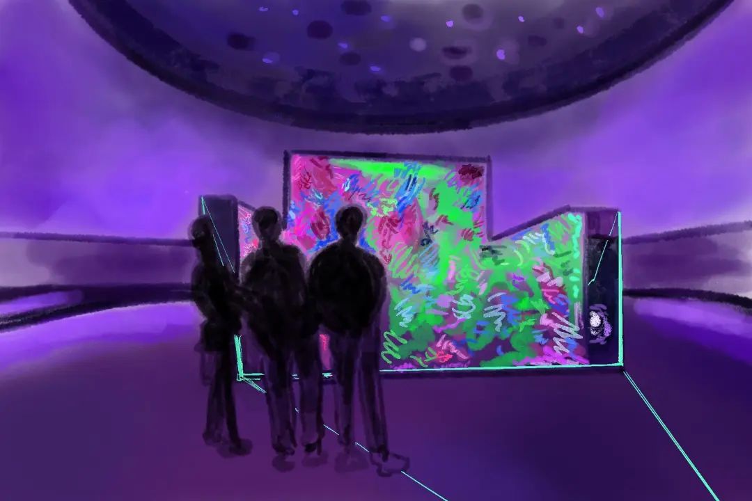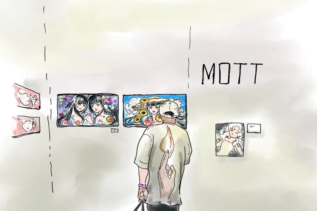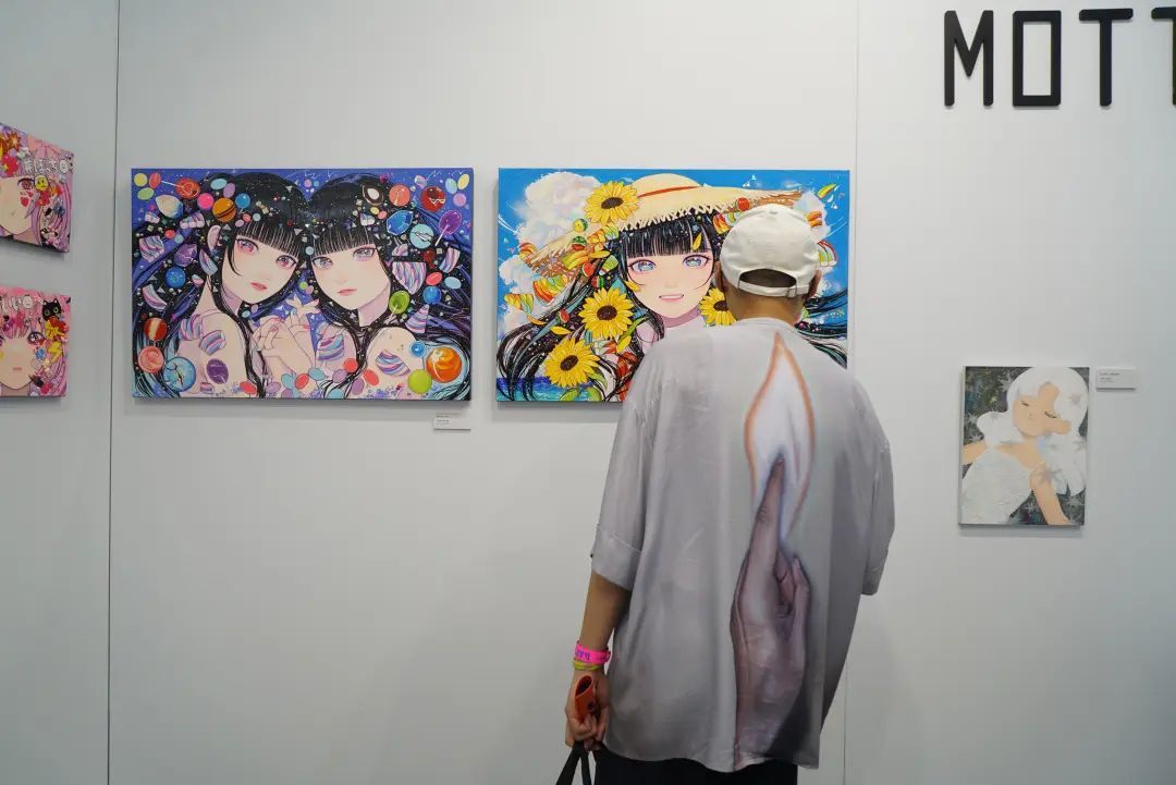 嘻哈潮男在二次元的作品前认真驻足,小小的宇宙包含着大大的缤纷世界。