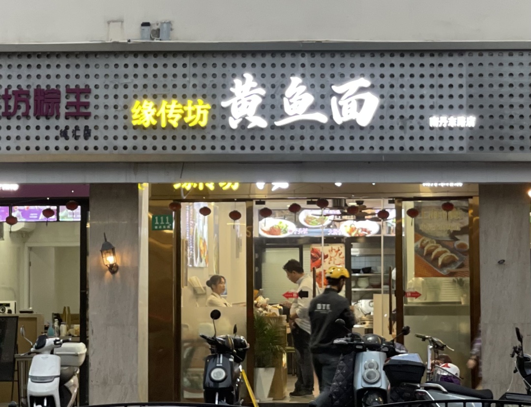 在徐汇区南丹东路上,有一家低调的面馆——缘传坊黄鱼面馆,店内简约略有烟火气的装潢营造出老上海的氛围。这家面馆虽然门面不大,但生意火爆,现在已成了一家网红饭店。