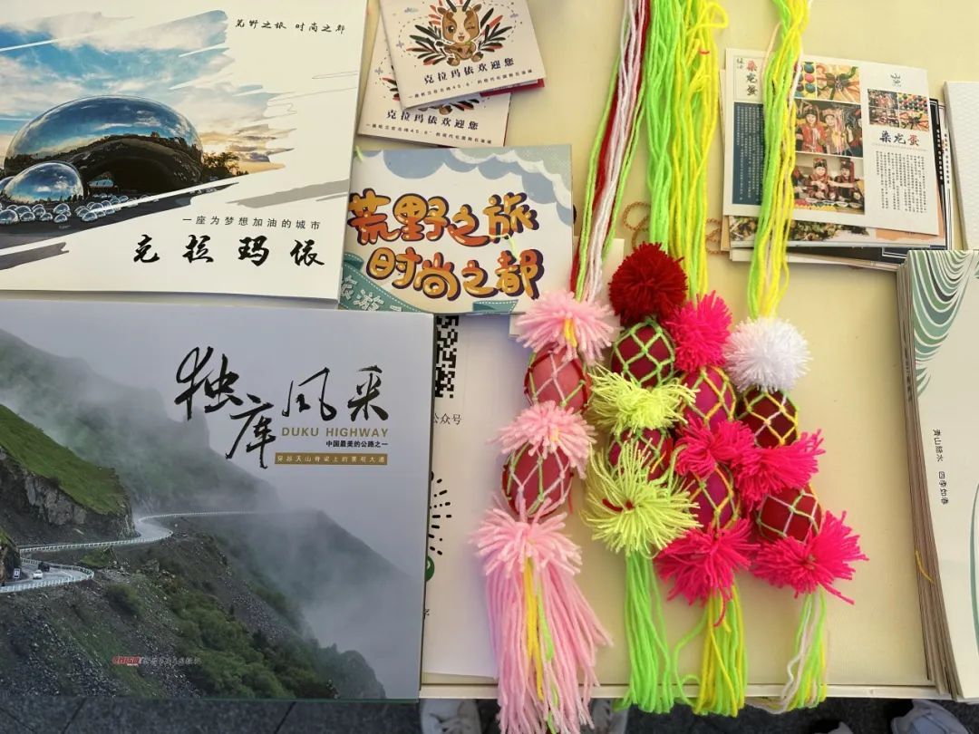 10月18日下午,长宁区“虹桥之秋”文化旅游购物节嘉年华“文旅推介市集”在新虹桥中心花园正式开启!市集集中展示了新疆克拉玛依、云南绿春、青海果洛地区民族特色手工艺品、非遗文化和旅游资源。市集将持续至10月21日。来到文旅推介市集,映入眼帘的便是一串串由彩色丝线编织而成的手工艺品。走近一看才发现,丝线里包裹的是一枚枚彩色的鸡蛋,一旁的小卡片上写着它的名字——染龙蛋。“这是从云南省绿春县专门带过来的。当地的哈尼族有‘祭龙’的习俗,‘祭龙’的时候,‘染龙蛋’寓意着吉祥。”一旁的工作人员告诉记者,这些染龙蛋都是由云南绿春哈尼族手工艺者制作,里面的鸡蛋是用天然植物染制而成,既可以装饰,也可以让孩子把玩。市民只要参与现场的文旅活动,就可以免费领取一串染龙蛋。除了五颜六色的染龙蛋,摊位上还摆放着新疆克拉玛依、云南绿春以及青海果洛地区的文旅推介资料。翻开图文并茂的手册,独库公路“一日游四季、十里不同天”的壮美奇景、绿春县云雾绕山间的如画乡村纷纷呈现在眼前,让人仿佛“穿越”千里之外,开启了一场美景与美食的旅途。市集上,长宁区的非遗作品也在现场进行了展示。撕纸、叶雕、海派绣球、传统人文香事……让来往市民近距离感受到了非遗文化的魅力。
