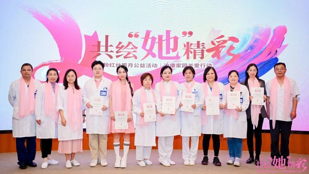乳腺外科主任汪成介绍,“粉红丝带”作为全球乳腺癌防治活动的公认标识,向广大女性普及乳腺健康知识,通过“汝康家园”的平台,医护人员可以进一步参与到乳腺癌患者全方位、全周期的健康全程管理,让“家人们”在身体康复之外,更能心理康复、社会功能康复,勇敢撕掉患者的标签。