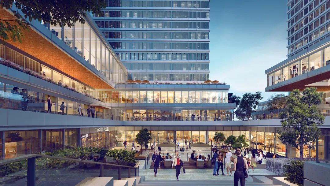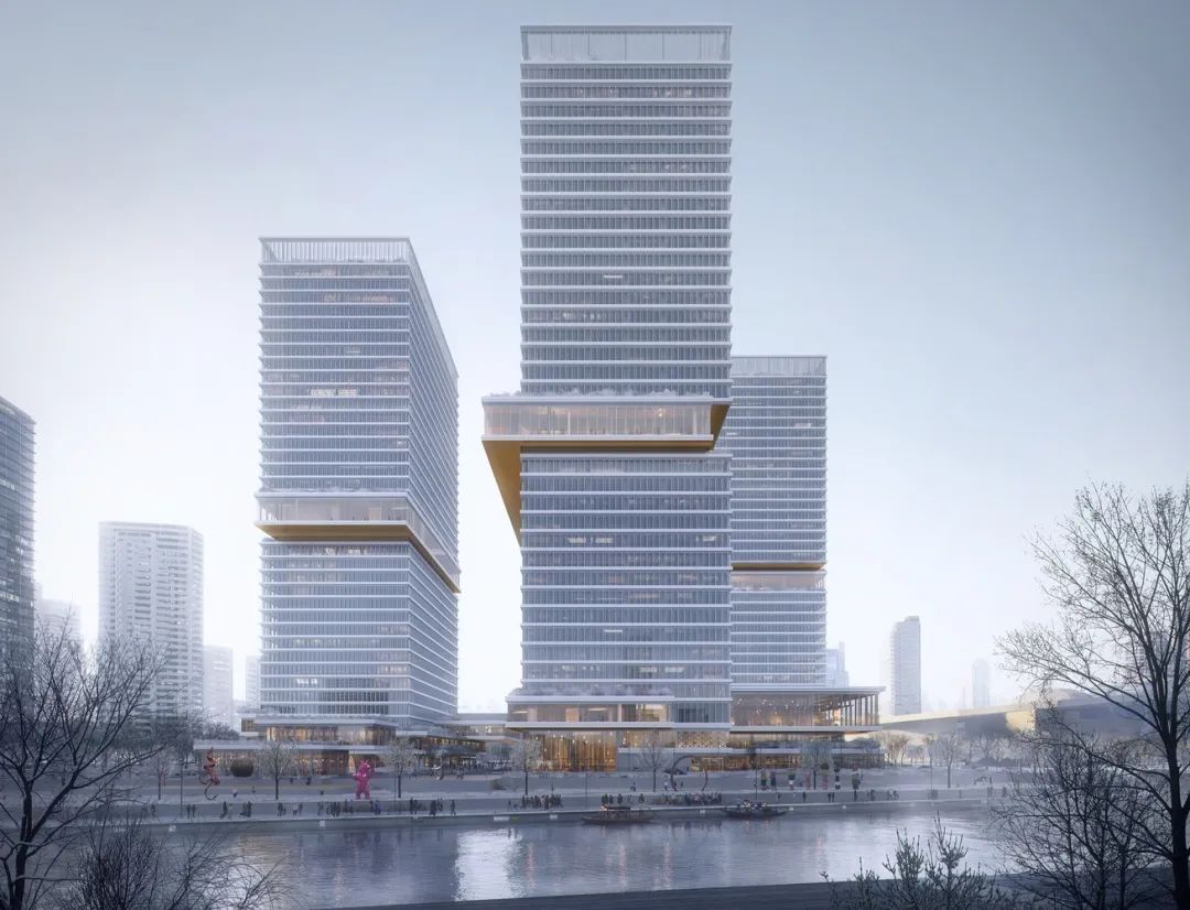 三栋高楼外形独特,围合出7000平方米的共享中央广场,与上海博物馆东馆上下贯通,融合城市功能,实现工作与生活、生活与文化的无界贯通。