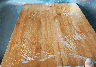 大量流水冲洗可以很好地去除菜板表面的各类污渍和细菌。还能避免使用清洁剂后的残留,但要注意冲洗时飞溅的污水不要污染到其他食材。