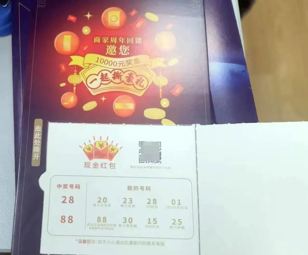 有的“提货卡”宣称“最高可获得10000元现金奖励”的卡片,卡片上不但写着“揭开有礼,百分百中奖”字样,还印有某知名企业家的图片以及所谓的兑奖二维码。
