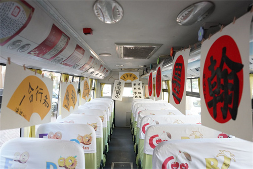 当天,与会领导与嘉宾共同为“翰墨飘香”主题校车揭牌,推出了“翰墨飘香 书写未来”书法主题校车,通过在校车车体张贴学生代表书法作品、“翰墨飘香”书法主题车厢主副版、小贴士,从孩童视角唤起全民对中华传统文化的传承意识,在车厢中营造中华文化历史传承的浓厚氛围,引导乘车学生积极学习书法、了解书法,为中国书法创造更加广阔的发展空间。下一步,青岛城运控股集团也将利用自有的对外宣传窗口,加大对大赛的宣传推广,并把近2000部温馨校车打造成为承载中国传统艺术交流与中国书法的传承发展的“流动阵地”。