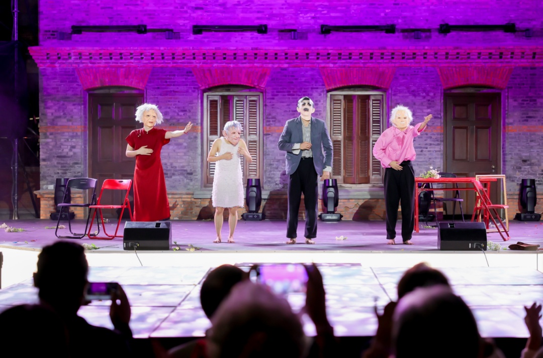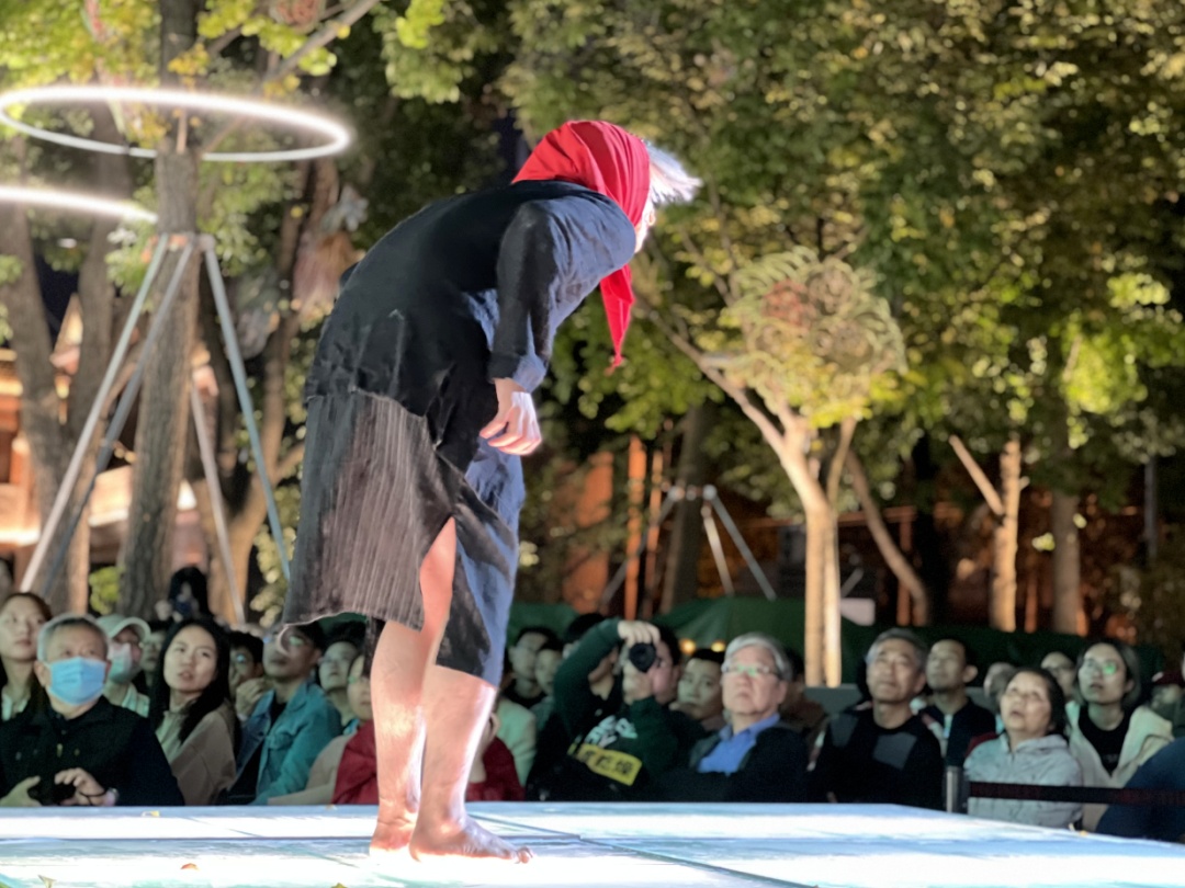 当晚,全新设计的百年建筑三联排双重舞台上,一位位头戴面具、扮作老者的青年艺术家,以戏剧、现代舞、舞踏等多种艺术形式与创作技法交相融合的生动表演,呈现了一场与每个人紧密相关的故事。这一由现代舞者、编舞、舞动疗愈师肖智仁主创的原创剧场作品,被誉为本届扶青计划最具潜力的作品之一。“这周围独特的文化底蕴和历史背景让我很兴奋,所以我在创作这个3.0版本的时候,自己能感觉到仿佛这几个老人角色是出生在这里,并在这成长生活着的。”肖智仁告诉小虹,此次的定制版本是由主创团队以今潮8弄历史保护修缮街区为原点,深度探索其场域独特性,对虹口四川北路等周边克勒生活采风后进行的再创作版本。