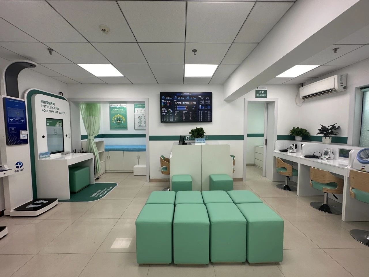 根据建设要求,该慢病支持中心配备标准化电子血压计、血糖仪、身高体重测量仪、腰臀围测量仪、肺功能筛查仪,智能语音随访亭、小云镜和健康数据大屏等健康信息采集设施设备。