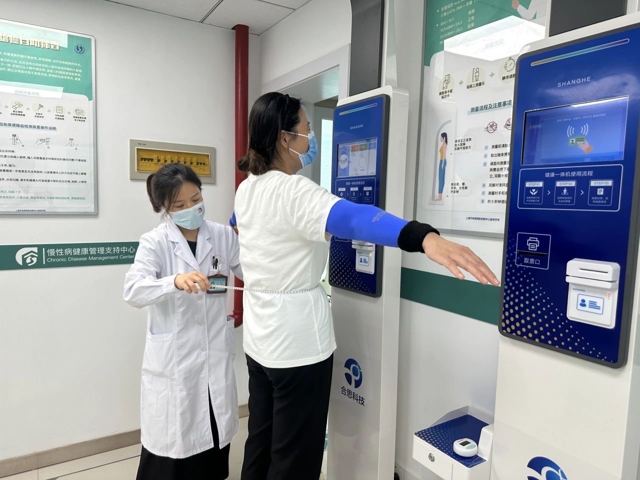 “我们在慢病支持中心安排专职医务人员引导患者在诊疗前使用医保卡或身份证进行精准测量。测量完成后,数据将会自动上传至‘医生工作站’、‘慢病一体化系统’、‘健康体检系统’等多个系统。家庭医生能获取精准的数据,方便后续全面、精确地诊断,居民也能在‘健康云app或小程序’上看到测量数据进行自我管理,相当于居民在‘家门口’就能享受到规范化、综合化、精准化、标准化的慢性病健康管理服务。”彭浦新村街道社区卫生服务中心方面表示。
