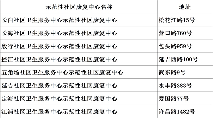 康复是健康服务体系重要组成部分,而社区康复是康复医疗的网底,也是居民在家门口获得便捷可及服务的平台。当前,全市示范性社区康复中心总数达到118家,其中,杨浦有8家,分别是↓