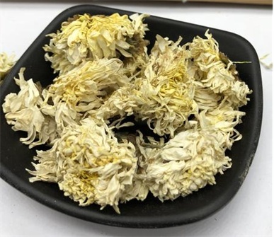 杭白菊又称甘菊,朵大瓣宽,花瓣白色或黄色;气味清香。