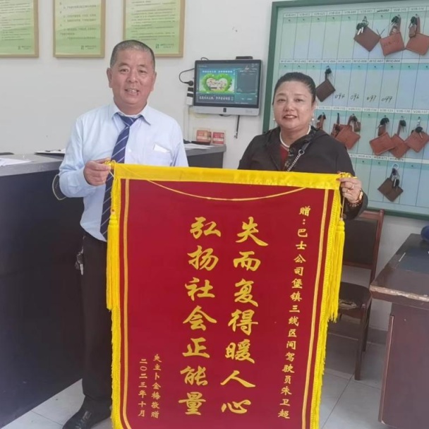 近日 在“十米车厢”陆续上演 “拾金不昧”的好人好事 谱写了崇明公交人文明诚信的美好品德 10月15日,申崇三线区间驾驶员朱卫超驾驶车辆从堡镇汽车站开往汶水路站,一程一检时在座位夹缝里捡到一只布艺手包。手包鼓鼓囊囊的,掂起来沉甸甸,朱卫超立刻将其交到了调度室登记。 经清点,包内有现金6300元、手镯1只、项链1根、挂件2根、500元百联卡1张、银行卡1张、护照2本。 失主意识到手包丢失后,慌张来站点询问,得知自己遗失的物品已被驾驶员捡到且妥善保管在调度室时,悬着的心才落了地。当她看到包内物品分文不少时,更是激动地连声感谢,“你们真是太热心了,做事细心又负责。包内的一些饰品对我有特别的意义,真的太感谢你们了!” 之后,失主为感谢朱卫超的拾金不昧,还特地送来了印有“失而复得暖人心,弘扬社会正能量”的锦旗,赞扬他的高尚品德。
