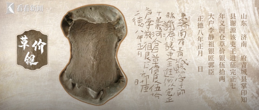 这件明代草价银,是为京城御马监(或光禄寺)运送粮草所折银锭。明代赋役改革以折银为主要形式,草价银是马草折银的一种称谓。这件银锭见证了明代田赋折银与白银货币化逐渐铺开的过程。