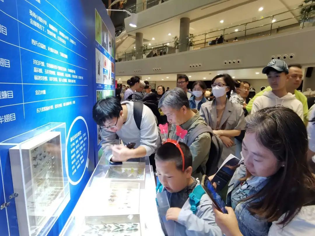 现场,“城市昆虫”展览在上海自然博物馆B2中庭开幕,并发布由上海自然博物馆“我的自然百宝箱”项目组、上海师范大学环境昆虫学实验室及大城小虫工作室共同梳理的《上海昆虫名录2023版》,收录3090种昆虫,堪称上海城市“观虫宝典”。展览分为“上海昆虫大调查”“城市昆虫小百科”“身边昆虫在哪里”“行动:听见万物”四个板块,展示了约450余件采集自上海的昆虫标本,以及20余幅来自中国、意大利、巴西、法国等7个国家的陈伯吹儿童文学奖原创插画、2项东华大学艺术设计作品、1项“虫趣迷宫”VR体验活动以及1项AI互动体验装置,为观众打开观察城市昆虫的窗口。