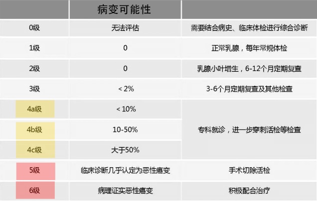 当诊断结果在BI-RADS4类及以上考虑有恶变几率需尽快前往乳腺外科就诊。