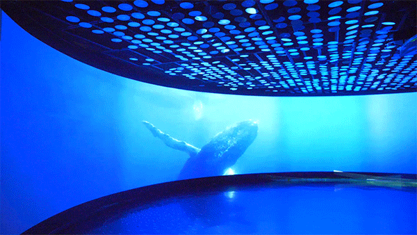 来自上海市育鹰学校、同济小学的同学们参与了线下的活动。大家跟随地上指路的流动鱼形图案,走进探索馆寻觅未知的世界。