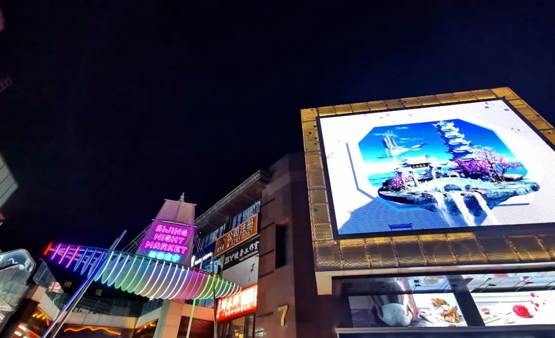 出了轨交9号线泗泾站,抬头便是一面崭新的液晶显示屏,以泗泾古镇元素打造的宣传片和公益广告滚动播放着,一旁还有一艘绚丽多彩的“小船”,仿佛正扬帆而行。