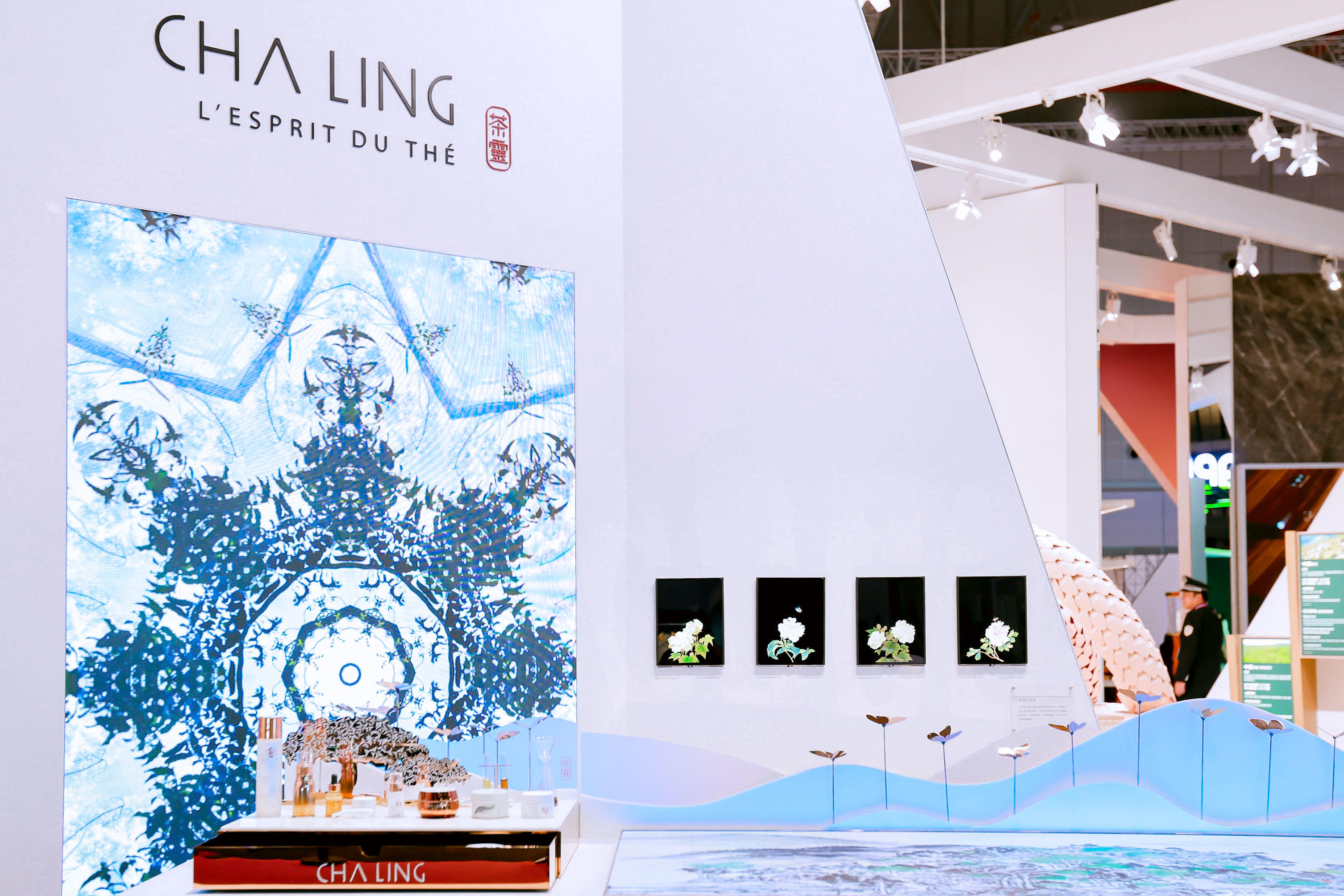 在进博会现场,CHA LING茶灵打造了一个生机勃勃的“文化生态展台”,别出心裁地以数字化手法呈现出云南地区丰富的生物多样性和具有千年历史文化的景迈山古茶林景观。