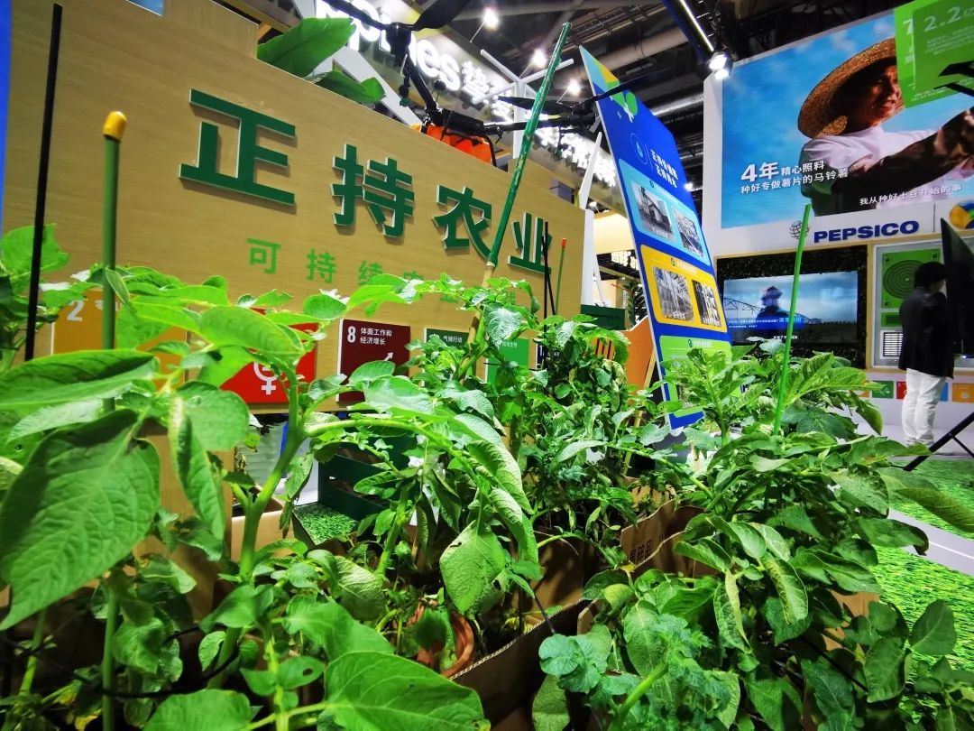 通过土壤张力计算、气象监测数据,精准计算作物腾发量,快速了解土豆的“口渴”程度,再决策是否立即为土豆“解渴”。在百事公司的“正持农业”展区,负责人王静向记者介绍了土豆的“成长之路”。这些进博会的土豆“明星”,向观众全面展示了其如何借助农场的智慧化种植模式,达到“四减两增”(减药、减肥、减水、减能耗及增产、增效)的“百事标准”。