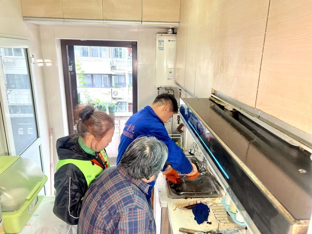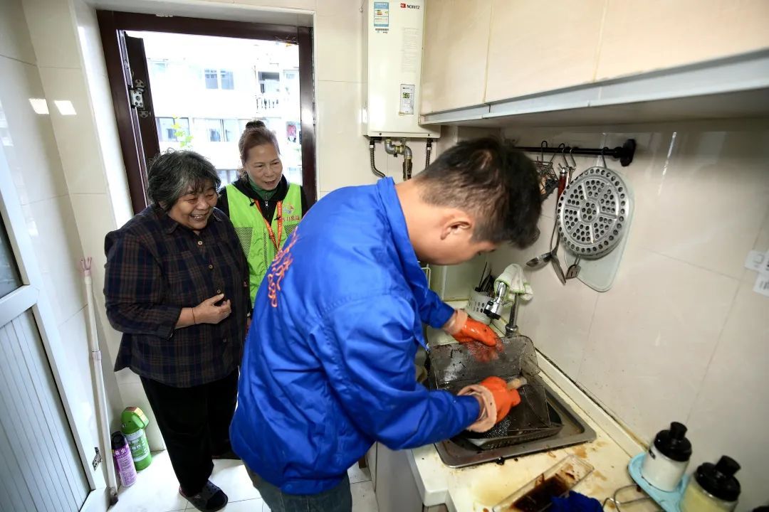 察觉到吸油烟机似乎出现了问题,沈阿婆立刻与街道“‘益’起帮一把”项目结对志愿者进行联系沟通,了解其需求后,志愿者第一时间安排工作人员上门清理。