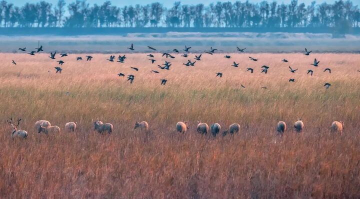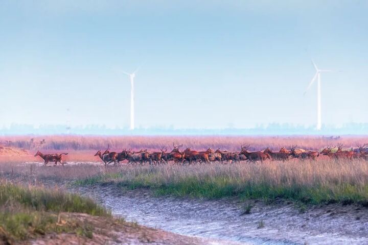 “720高地”相距不远处,是川水湾海岸带湿地修复项目。作为我国首个海岸带遗产地生态修复项目,这个区域原为渔民的养殖鱼塘,后经退渔还湿,恢复了淡水湿地、咸淡水湿地、咸水湿地等原生自然湿地,为水鸟和麋鹿创造了适宜的生活环境,目前已全部竣工。筑好金丝巢,自有凤来栖。作为“业主”,水鸟、麋鹿等野生动物早在川水湾海岸带湿地修复项目“交付”前就已陆续入住,一拨拨水鸟成行成群甚至形成鸟浪,在此快乐地栖息、觅食,自由翱翔。作为全国唯一同时拥有2处国家级湿地自然保护区、2处国际重要湿地、1处世界自然遗产地的地级市,盐城目前全市自然湿地保护率达62.4%。