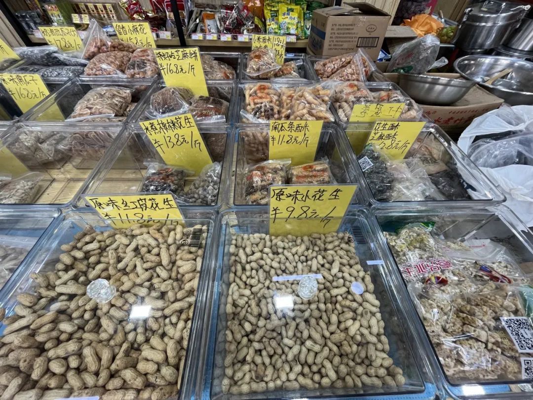 店内还有各式炒货坚果,各种口味应有尽有。店家表示,天气转凉后来购买炒货的顾客越来越多,店里平均每天能卖出100斤的香瓜子、花生,其他非现炒类的风味瓜子、松子、核桃等坚果销量也十分不错。