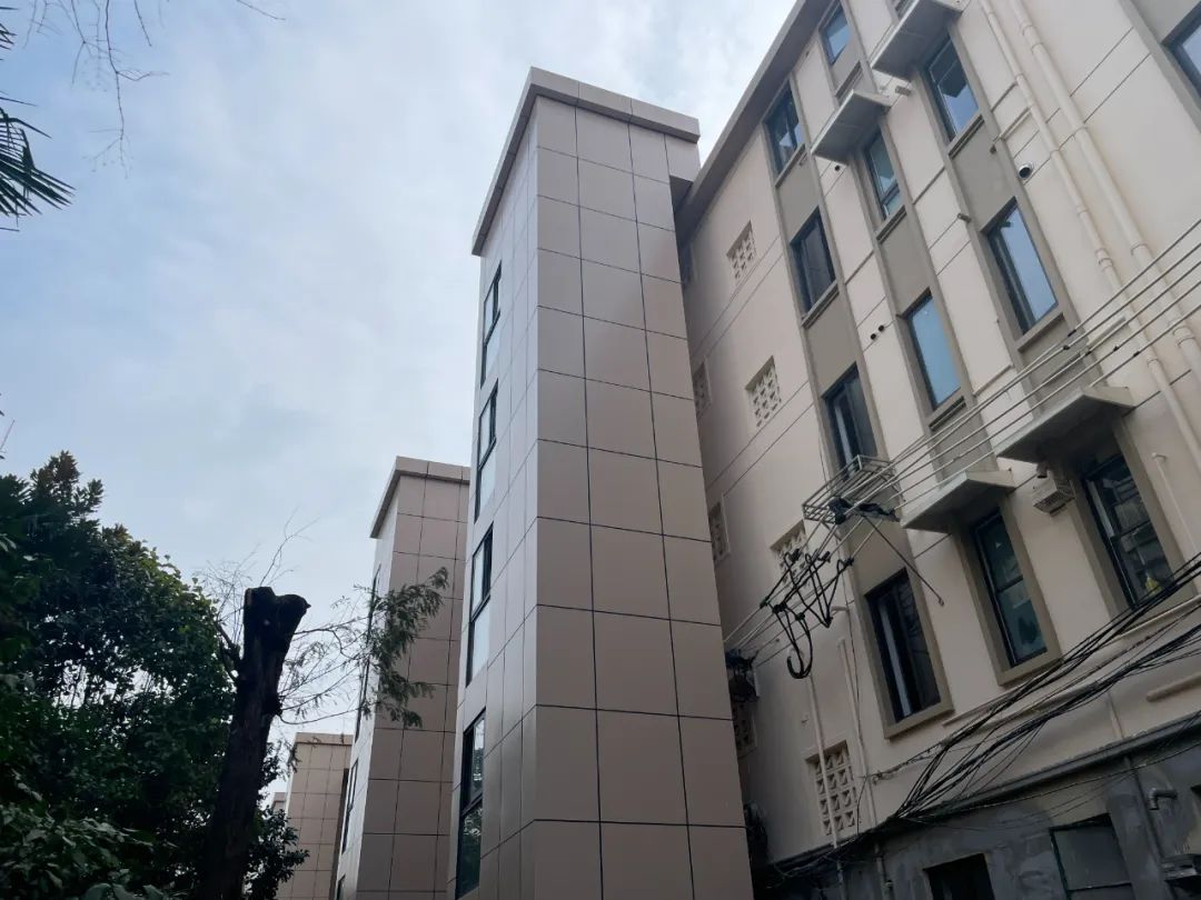 走进徐汇区宛南六村,43台崭新的电梯拔地而起,几栋样板楼率先完成“美丽家园”改造,暖黄色的外立面和电梯融为一体。