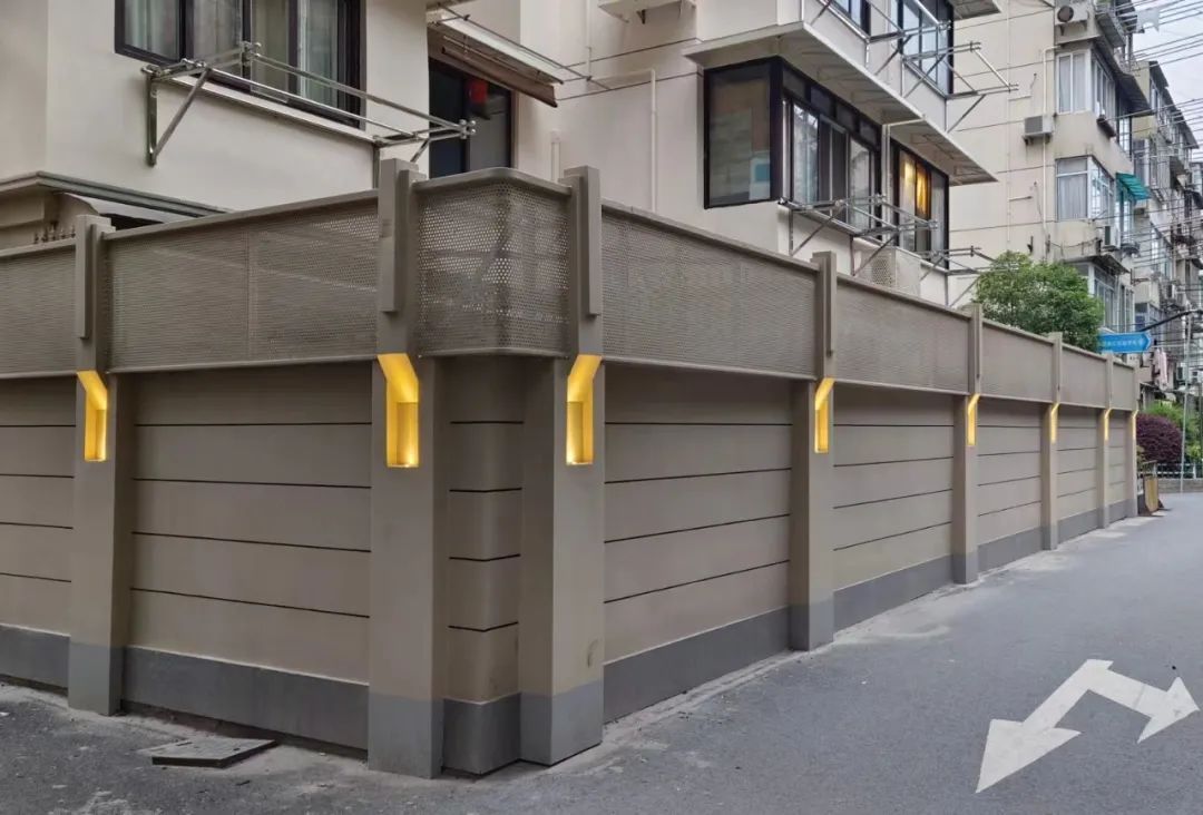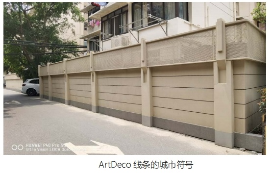 “从垃圾库房一直到主干道,再到亲子广场、口袋公园,其实是全过程全要素的设计理念。从里到外,让老旧房屋穿新衣、老旧小区焕新颜、老旧小区的居民过上新生活。”徐汇区枫林街道城市建设管理事务中心主任康胤说,小区外墙选用象牙白涂料作为主色调,辅之以咖色的真石漆结合抽象的城市符号 ArtDeco 线条,突出徐汇区优雅的建筑文化风貌。