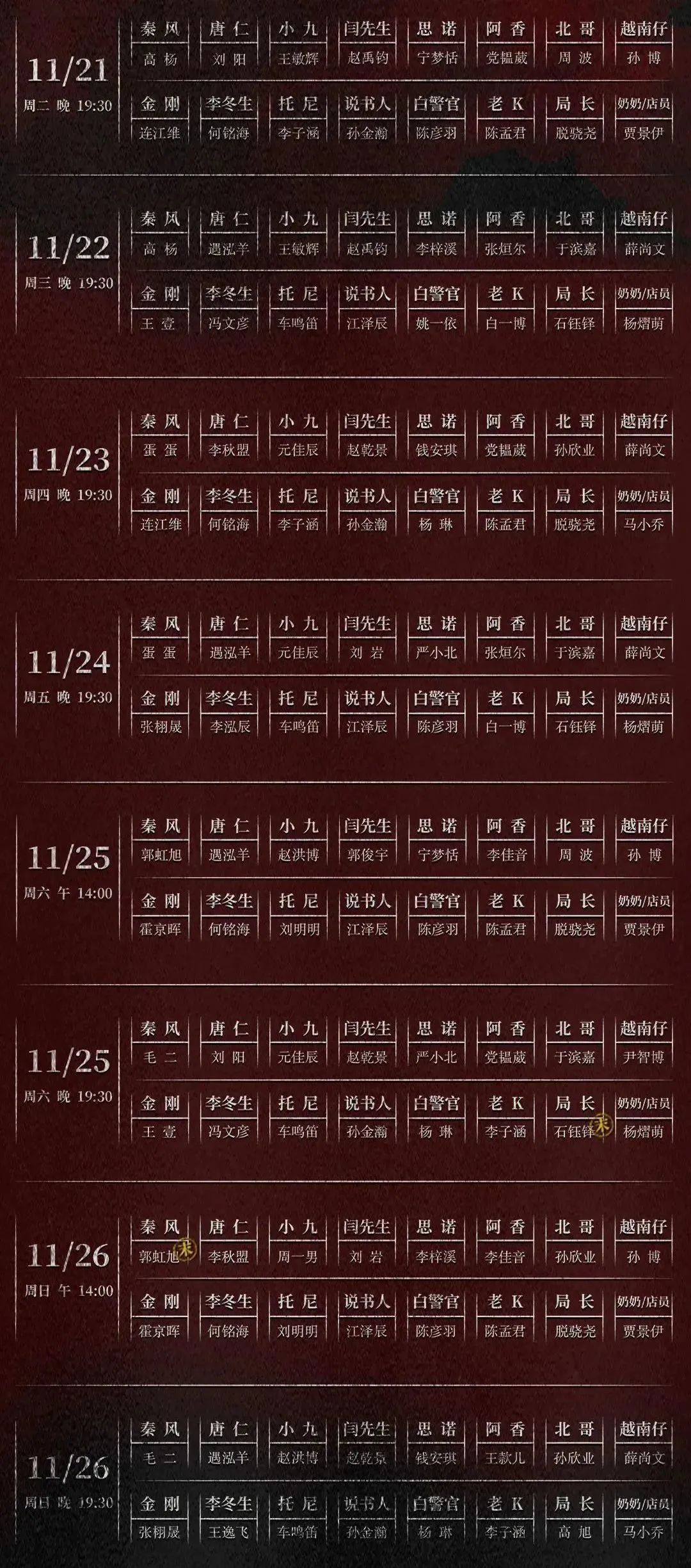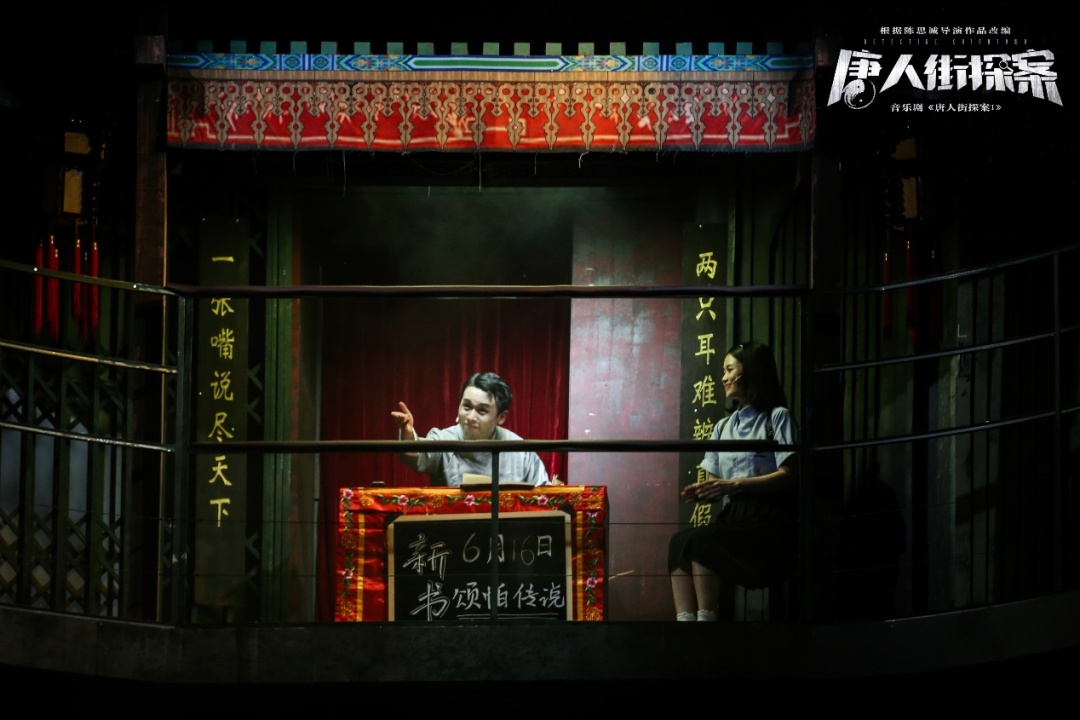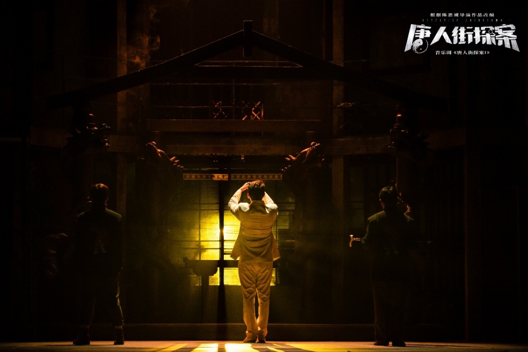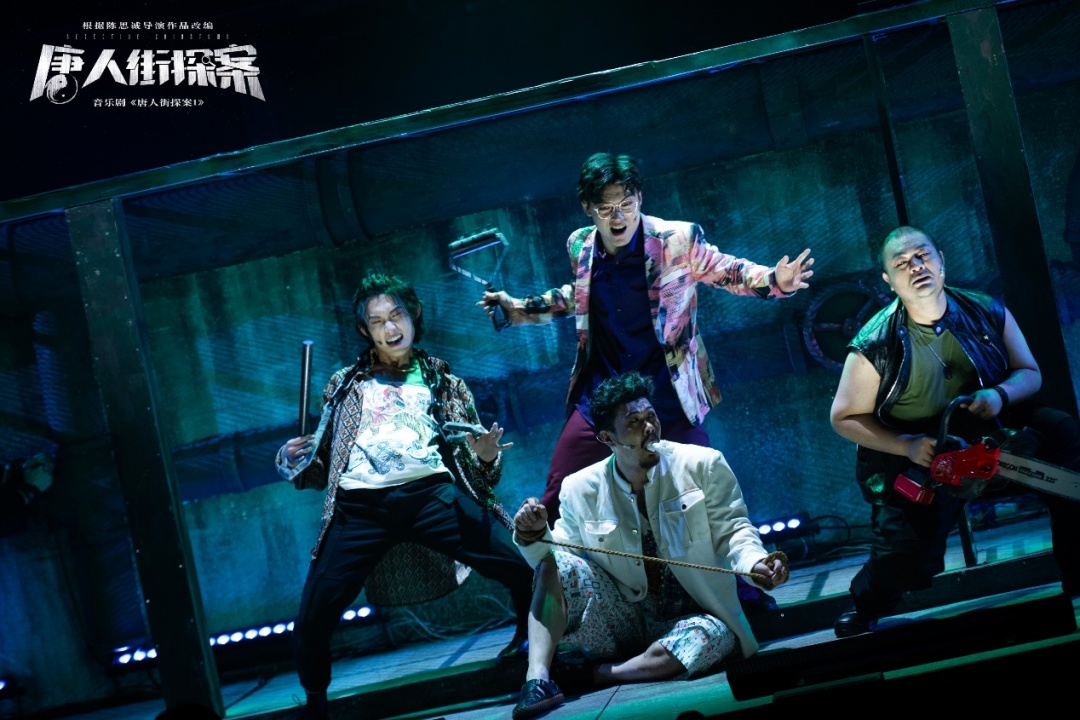高达三层的大型舞美以及其匠心独运的写实性布景,从细节处去还原泰国警局、颂帕工坊等多个场景。舞台上360度旋转的转台装置和悬空的巨大“佛头”,在绚丽的舞台灯光下,带来强烈的视觉冲击感。音乐剧《唐人街探案1》多方面地展现了曼谷当地浓郁风情,使剧情展现与场面调度相得益彰。“唐仁”和“秦风”这对“唐人街”侦探组合的荧幕形象早已深入人心,如何在音乐剧的舞台上演绎这两个独具魅力的角色,也是观众们所好奇与期待的。在音乐剧《唐人街探案1》所官宣的卡司中,不仅集结了曾在《声入人心》中有过亮眼表现的高杨、毛二、郭虹旭、王敏辉等极具号召力的演员,还邀请了刘岩、刘阳、张博俊等多年来活跃在中国音乐剧舞台上的资深演员,更有知名配音演员赵乾景这类跨界艺术家加盟。大幕拉开,16位演员震撼亮相,他们将在接下来的180分钟演出中饰演数十个角色,为观众展现一幅令人目不暇接的“曼谷群像”。在音乐剧《唐探1》中,许多演员不约而同地选择了与自己往常的角色有较大差异的角色,这无疑是一种挑战与突破,但对于观众来说,能看到演员多样的面貌则是十分惊喜的。除此之外,同一角色不同演员的演绎都有着各自的特点,各种卡司组合的唱演风格截然不同,彼此之间的情感传递也带来了奇妙的化学反应。音乐剧《唐人街探案1》不同于电影,还增添并塑造了“小九”“白警官”等新角色,为其曼谷众生相注入了全新的血液。音乐剧《唐人街探案1》以舞美与灯光的现场配合,在光影交叠之中,全力打造出颇具有电影画面感的悬疑氛围。
