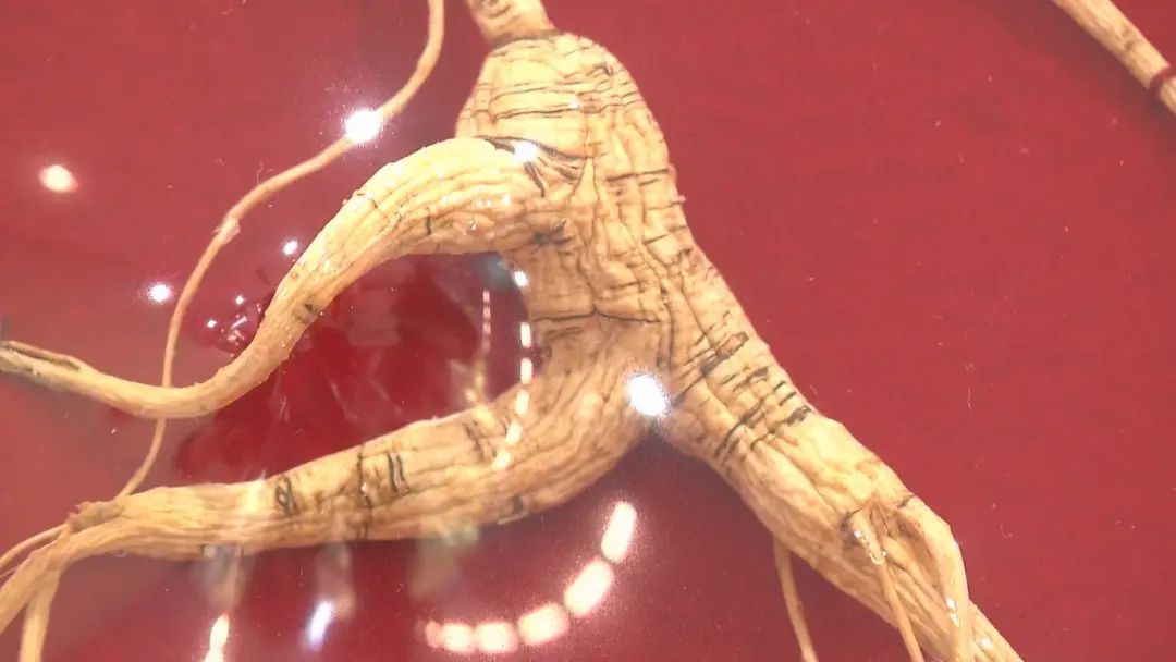 钱炳辉还向记者介绍,挑选野山参首先看野山参的整体,然后再看野山参的局部。野山参的头部称为“芦头”。这个芦碗要深,碗要一结一结的,这表示它的年份比较长。再看它的身体,这个身体要紧实。再看它的铁线纹,铁线纹越深,表示年龄越长。最后看它的参须,就像一个人的身体一样的,有头有身体有四肢。参须也要比较完整,像这样的参是比较好的。