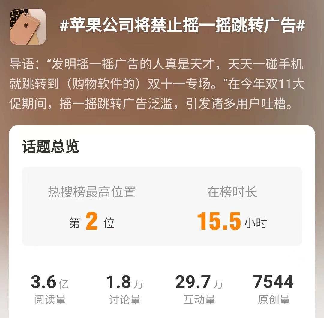 冲上热搜!“摇一摇”跳转广告终于要消失了?
