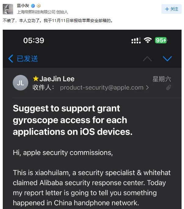 随后,知乎网友“蓝小灰”就此事发布的一篇贴文获得高赞。原来,“蓝小灰”曾给苹果安全邮箱发了一封投诉信,反映了国内部分App开屏广告跳转过于频繁的现象,并建议苹果公司对App访问陀螺仪权限等行为进行限制。