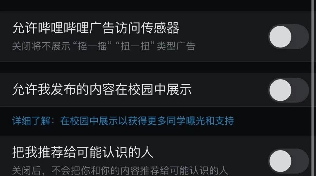 B站跳转广告展示功能设置界面。图源:网络