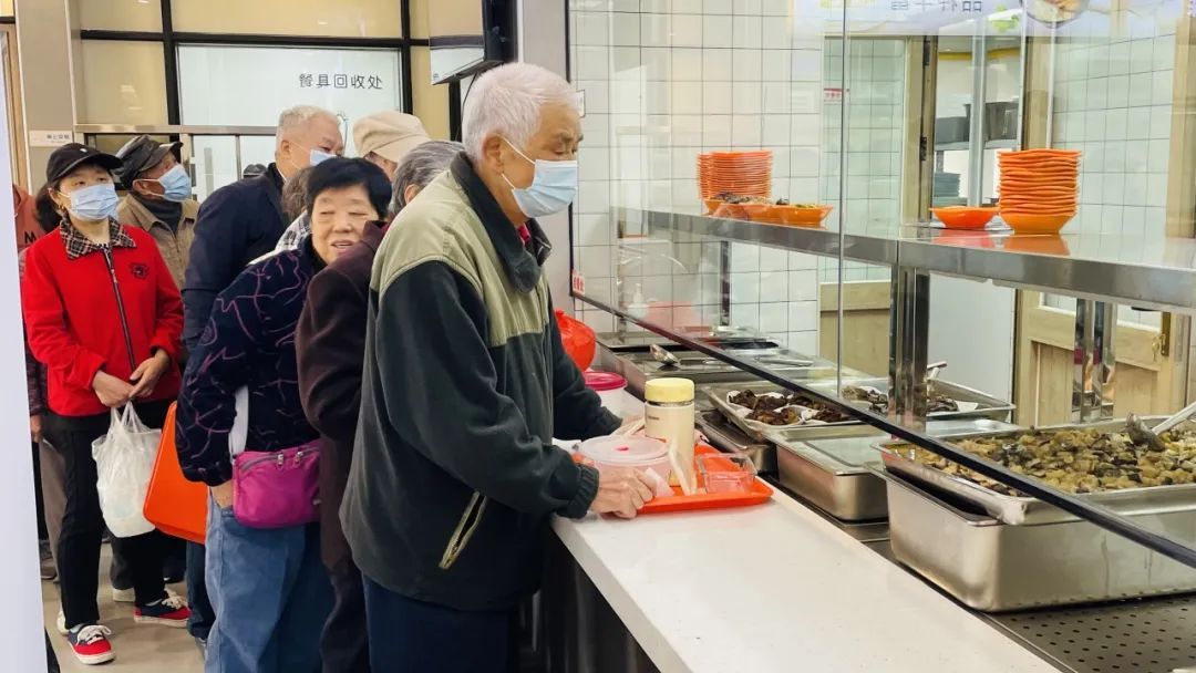 中午12点,走进食堂,大堂内宽敞明亮,环境整洁干净,前来就餐的老年居民络绎不绝。“今天饭点火爆,居民排队排到了门外!”工作人员自豪地说。