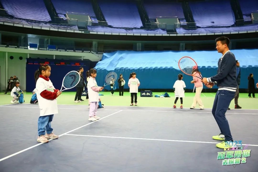 讲座后,吴迪还亲自上阵,带着孩子们来到室内网球场,学习正反手击球,还跟有网球经验的“小将们”来了几场对打,吴迪表示孩子们还是很好地入门了,网球是个“孤独”的体育项目,如果对于网球没有真正的热爱,真的很难坚持下来。希望孩子们可以坚持本心,通过努力实现自己的梦想。