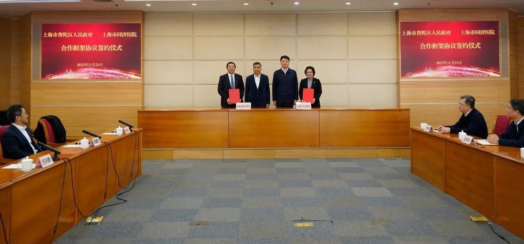 11月21日,普陀区人民政府与上海市同济医院签署《合作框架协议》,开启携手共进的崭新篇章。申康医院发展中心主任王兴鹏,区委书记姜冬冬,副区长王珏,同济医院党委书记许树长、院长程英升、副院长赵海鹏等相关负责人参加。