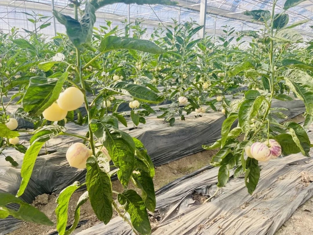 人参果水嫩清甜、营养价值高,近年来受到颇多市民青睐。近日,在枫泾镇九丰农场的大棚里,大批量种植的人参果陆续上市,可供市民游客前来采摘体验。