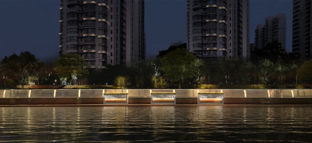 堤岸空间的夜景提升以苏州河上最具特色的“夜鹭”作为创作主题。去除原有过亮过炫的灯光,将在沿河栏杆或堤岸增设“鸟语花香”为主题的艺术景观灯箱,提升堤岸夜景的整体性和特色化,打造生态旖旎的普陀苏河岸线。