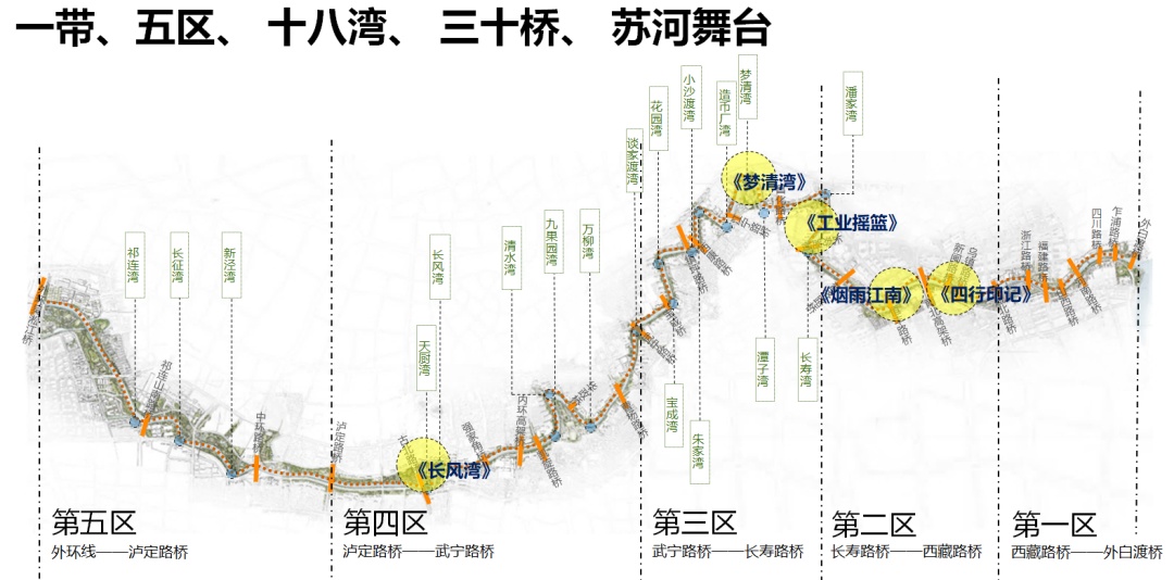选择潘家湾彭越浦泵闸、梦清湾、花园湾三处重要节点,设置艺术化、场景化氛围灯光,打造苏河夜游新亮点。