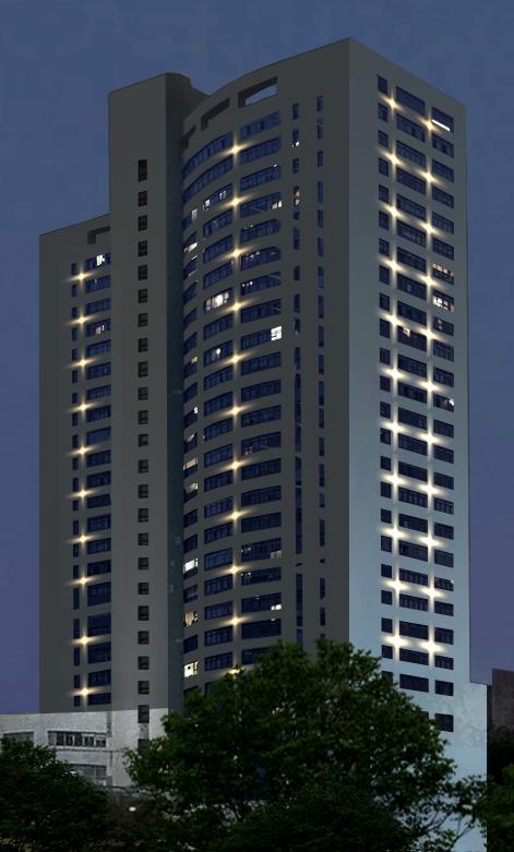 中期大厦照明结合建筑立面,设置星光灯,呈现典雅挺拔的建筑夜间形象。