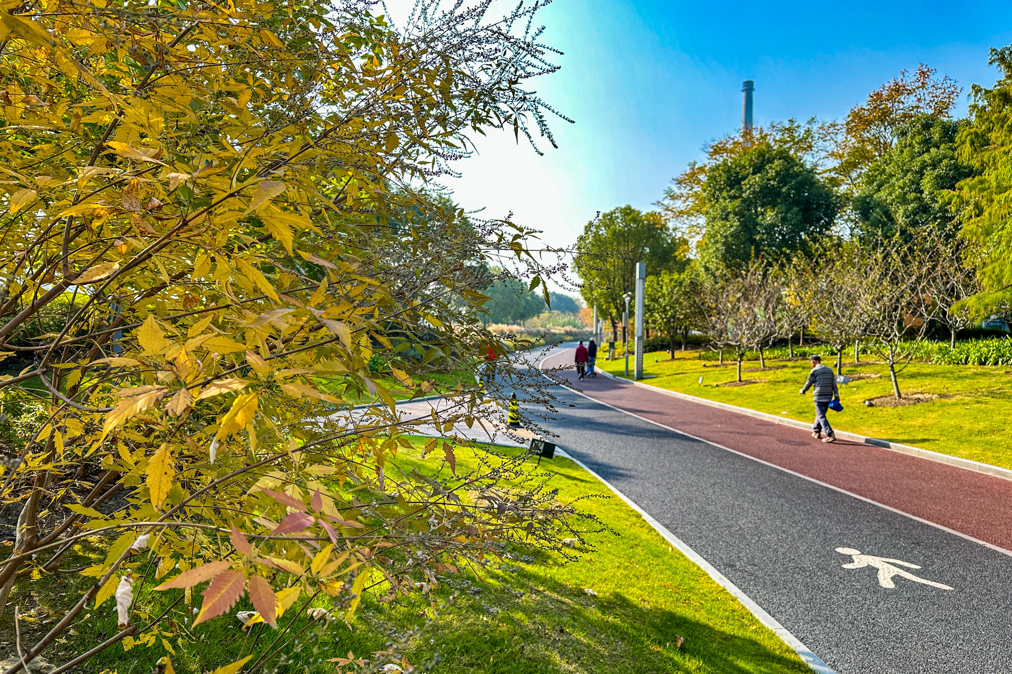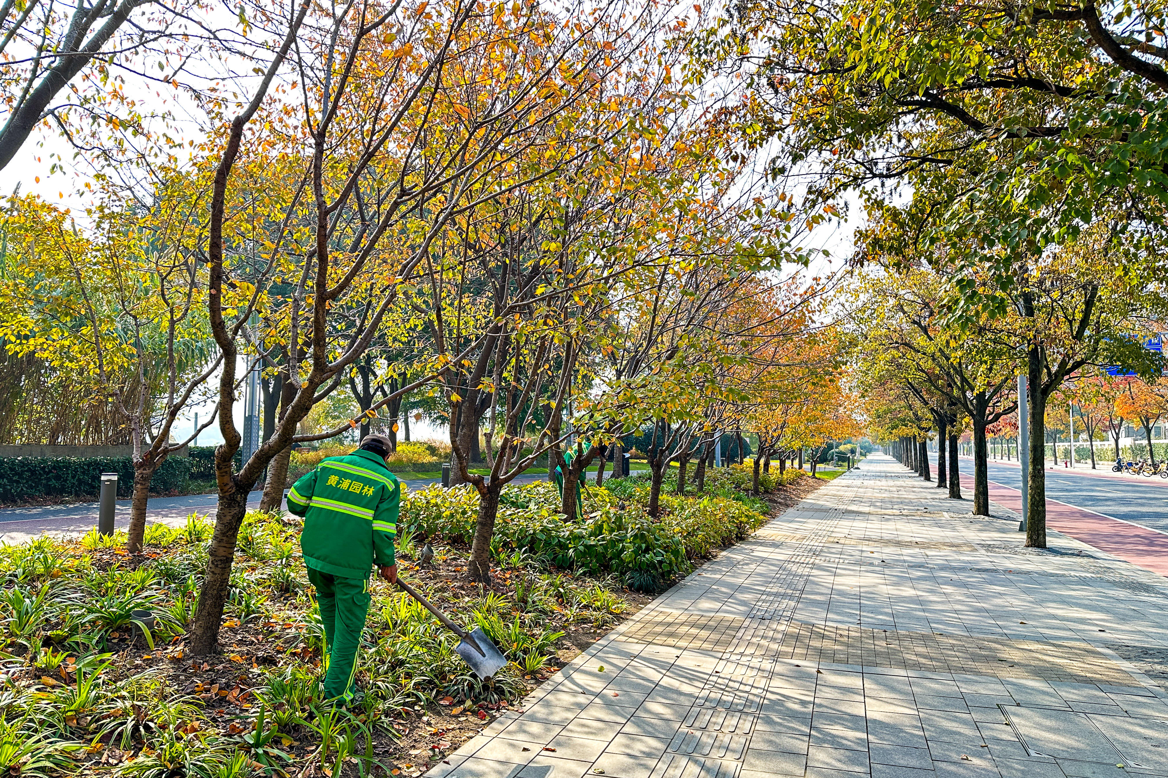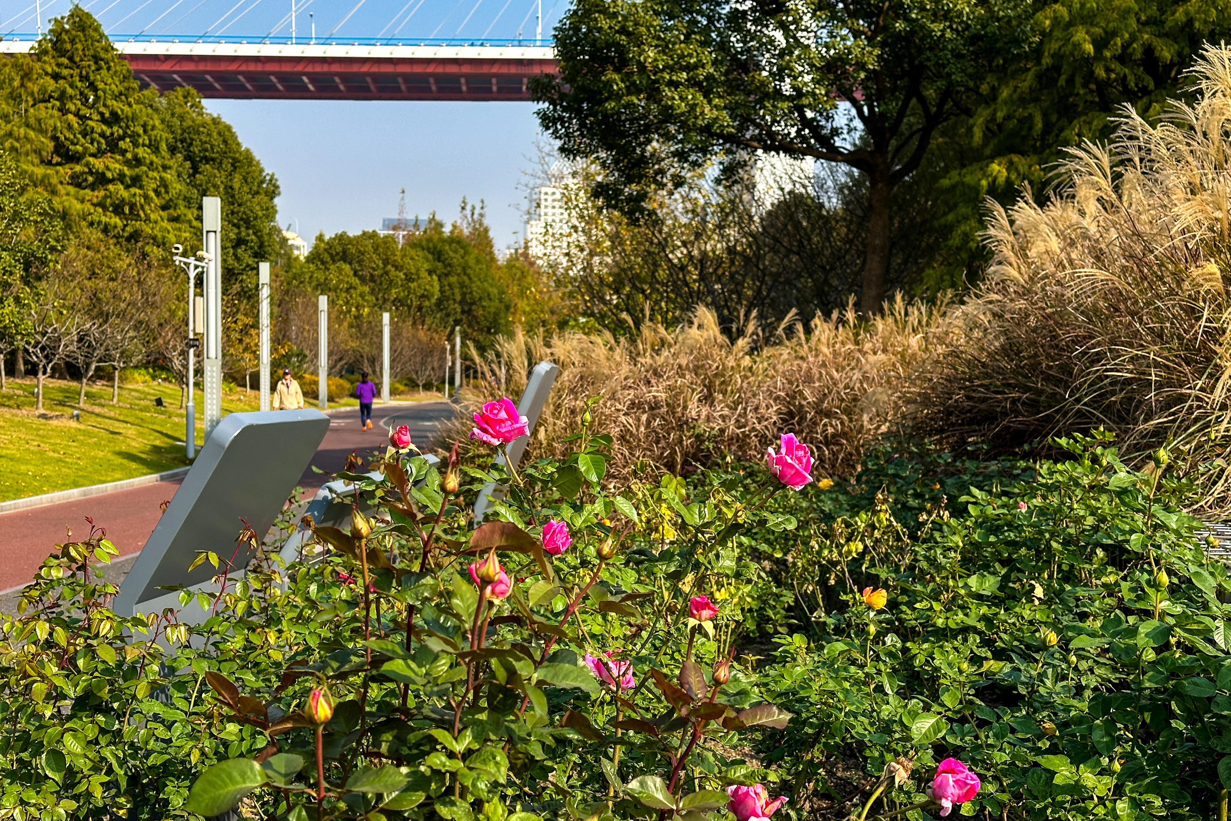 一早,黄浦滨江畔已是人头攒动。沿着滨江步道漫步,秋日的阳光洒在江面上,波光粼粼。沿江风光带景色宜人,绿树成荫,鲜花盛开。市民们或晨练、或跑步、或骑行,享受着温暖的秋日阳光。