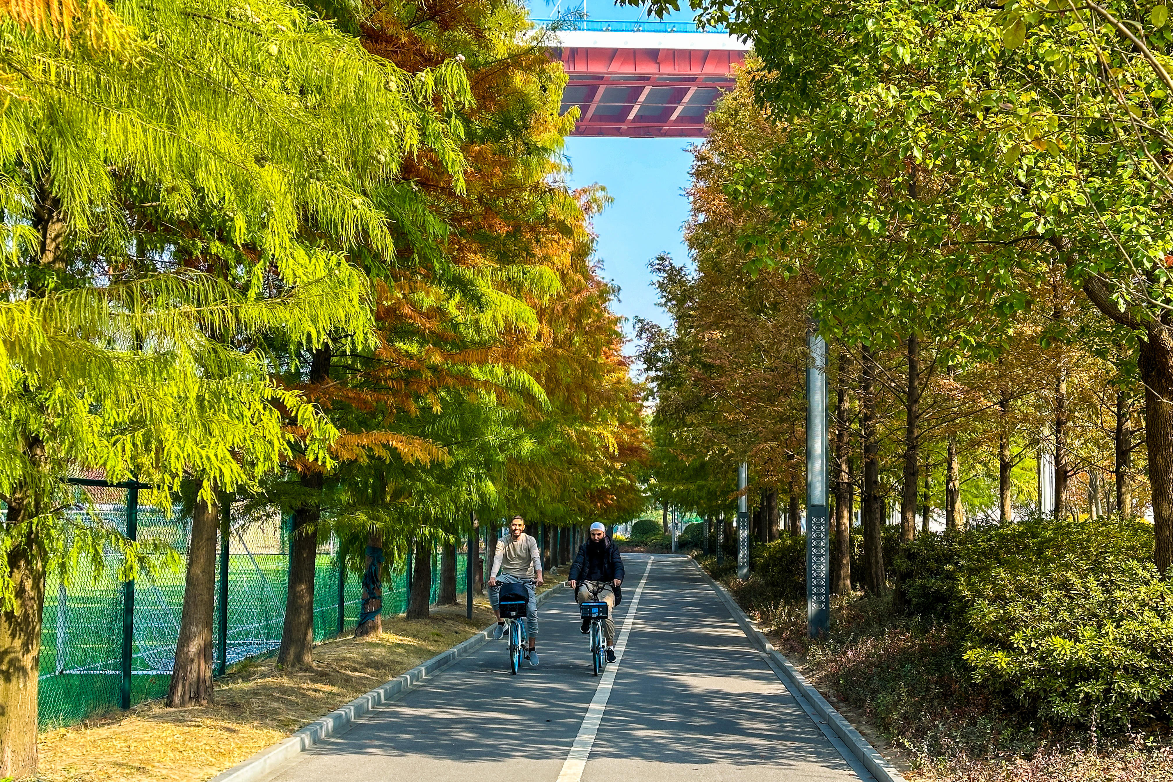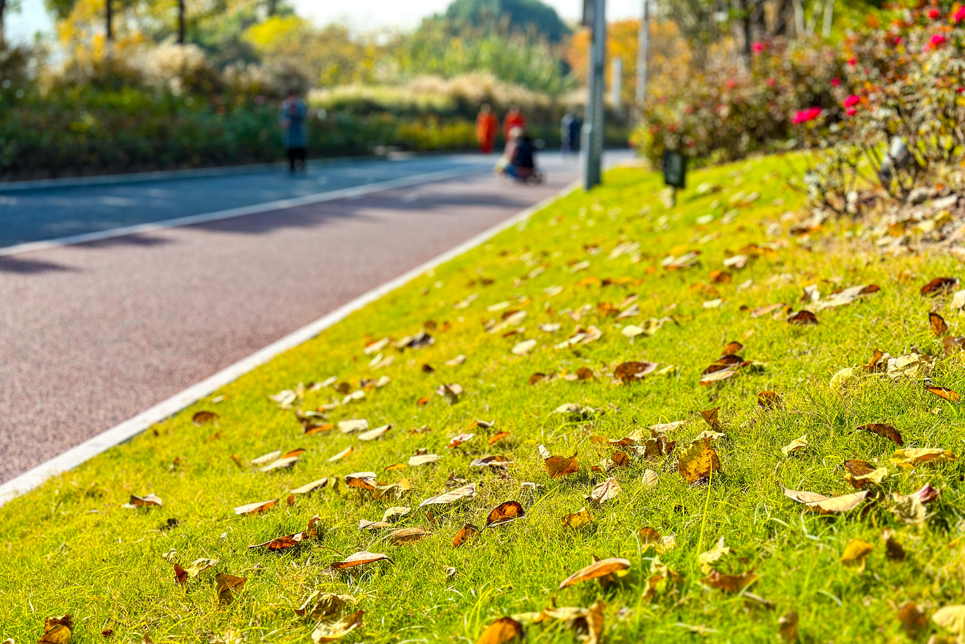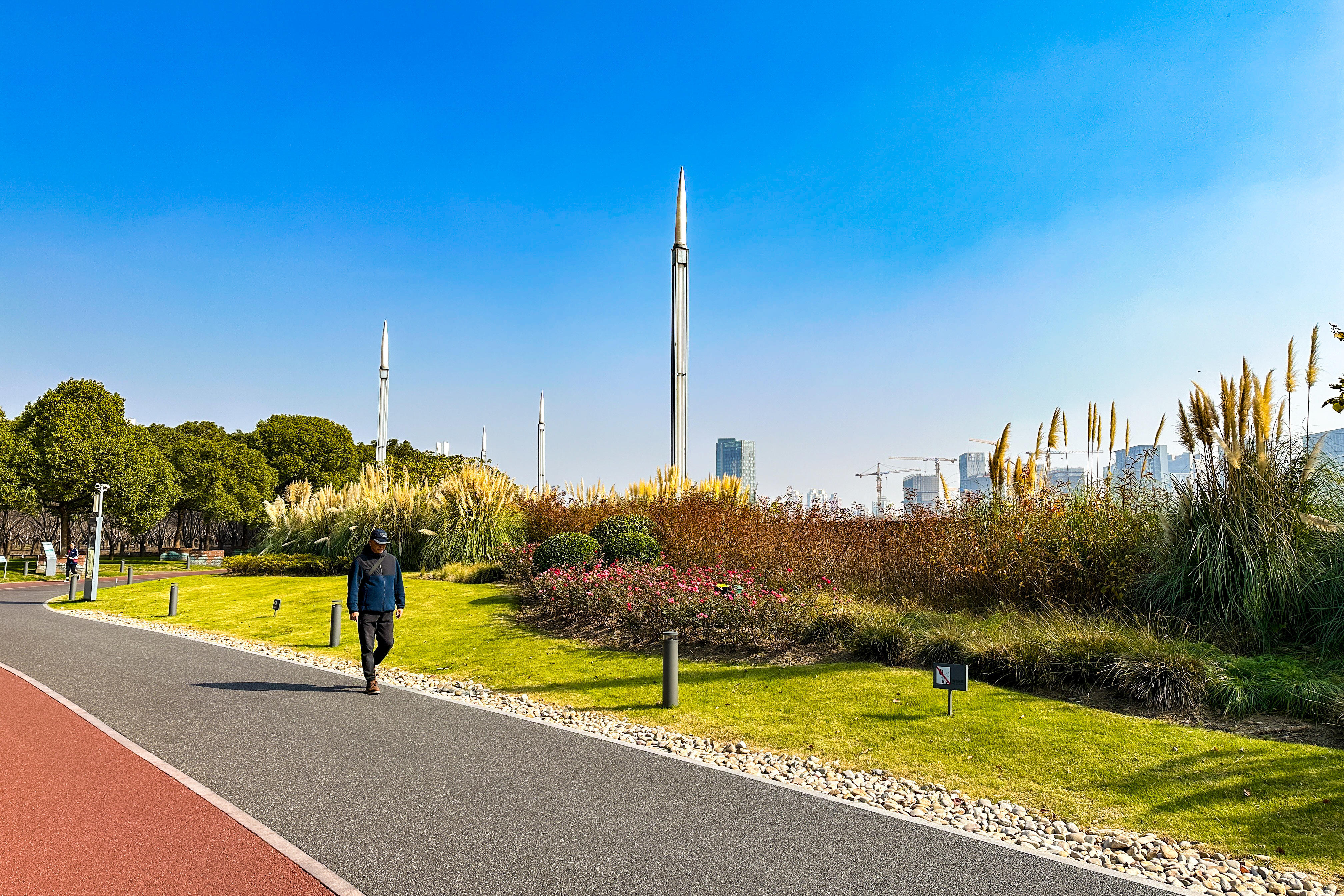 一早,黄浦滨江畔已是人头攒动。沿着滨江步道漫步,秋日的阳光洒在江面上,波光粼粼。沿江风光带景色宜人,绿树成荫,鲜花盛开。市民们或晨练、或跑步、或骑行,享受着温暖的秋日阳光。