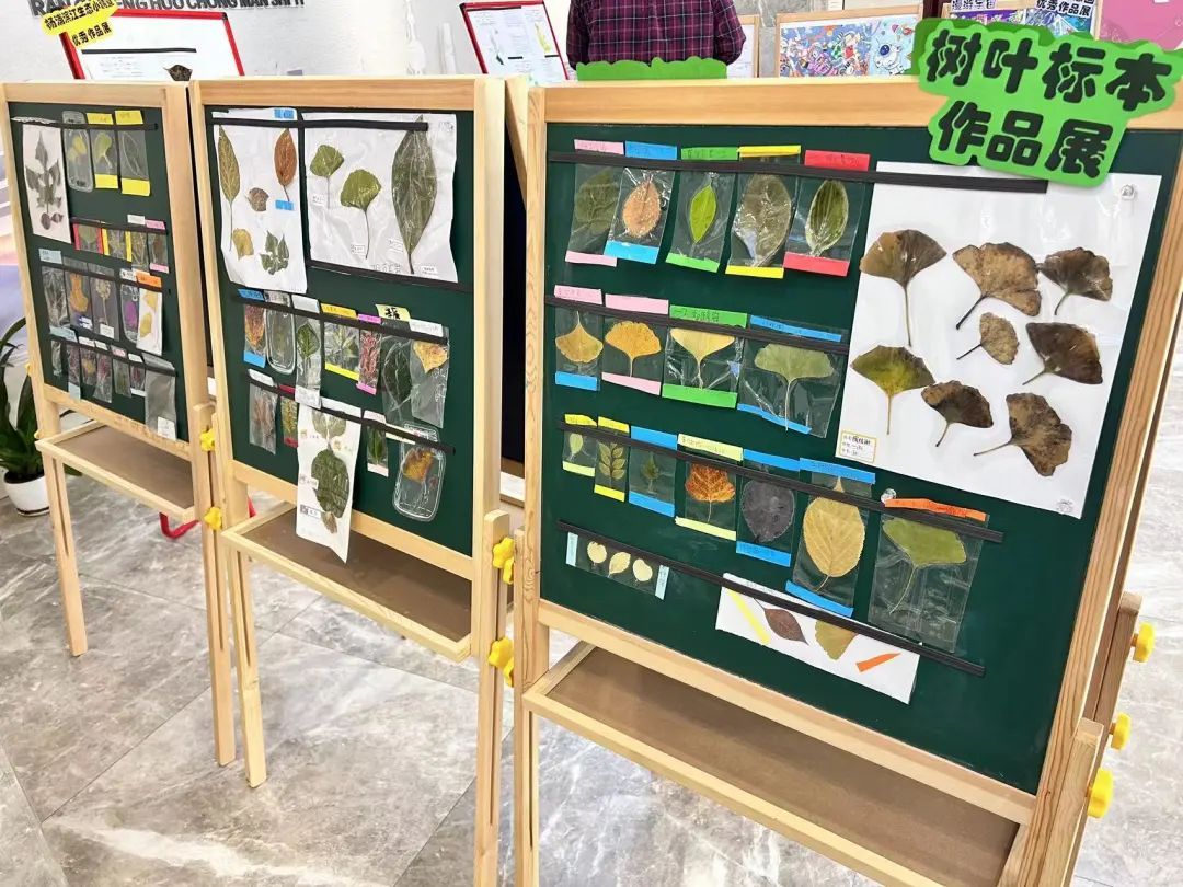 走进校园,门庭摆满了学生们此次科技节的作品展示。学生通过树叶拓印、印叶书签制作的活动,为秋叶留影,感受树叶的多样与美丽;有学生们发挥想象,拿起手中的画笔,以“漫游宇宙”为主题绘制了一幅幅创意幻想画;各类机器人、机甲战车创意模型满载着孩子们的奇思妙想。