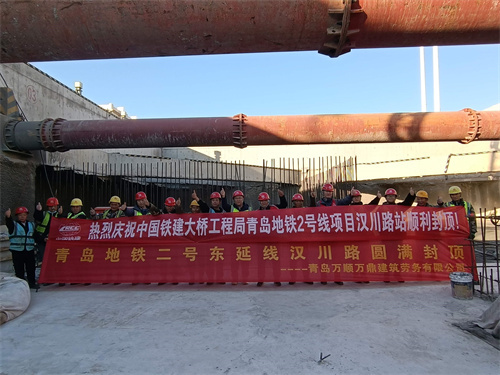 11月28日上午,由青岛地铁集团第一建设分公司建设、中国铁建大桥工程局集团有限公司承建的青岛地铁2号线二期工程土建03工区汉川路站主体结构封顶。